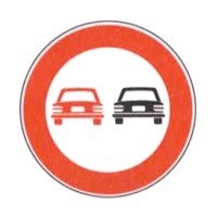 Il segnale raffigurato vieta il sorpasso fra autoveicoli, anche se la manovra può compiersi entro la semicarreggiata